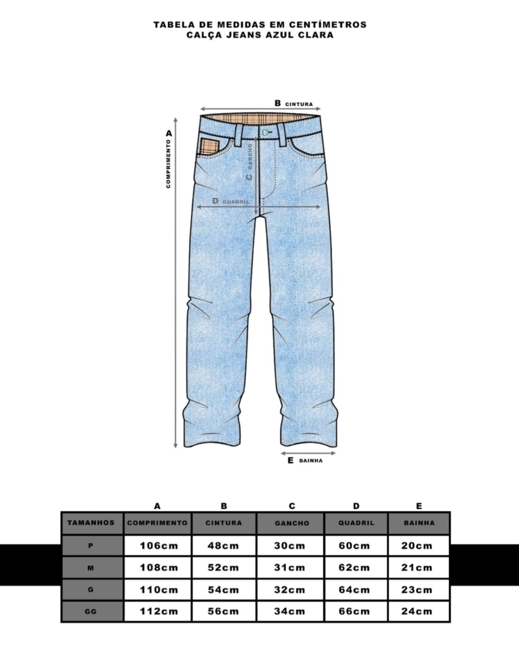 Calça Baggy de Corte Reto Feita em Jeans Azul Claro, costura em linha ocre 100% algodão
