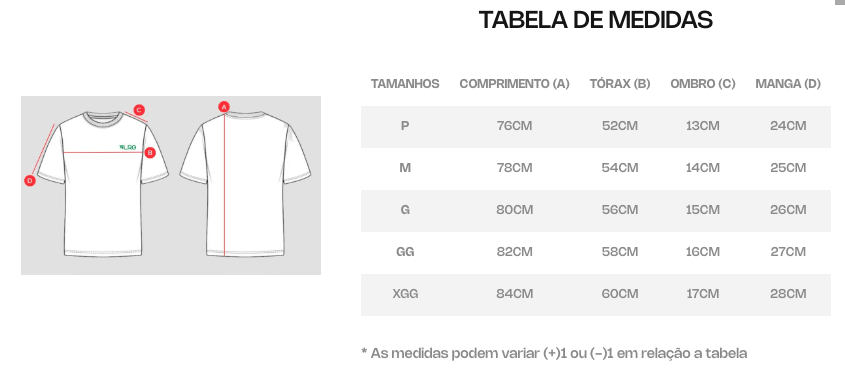 • Confecção em Tecido Meia Malha: Tecido leve, com ótimo toque e respirabilidade.