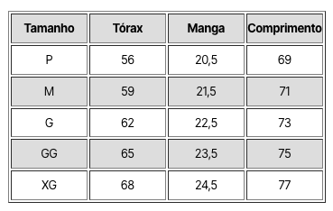 .: Malha premium 100% algodão de alta gramatura (260g/m2), que proporciona alta resistência e conforto;