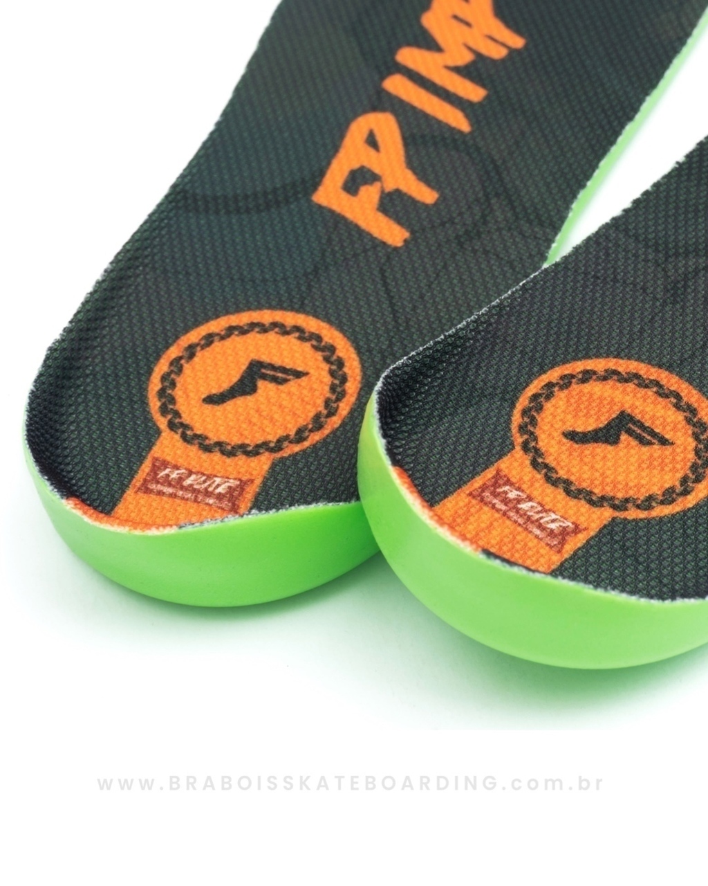 As palmilhas Elite são planas com uma calcanheira inclinada que oferece